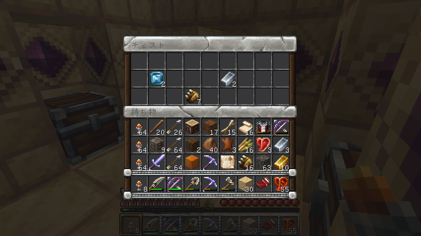 ほとんどが骨やら金インゴットやらゾンビーフでしたが、1つだけダイヤ入りの宝箱がありました。