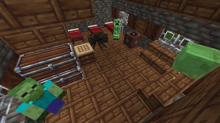 ジュークボックスは、スケさんがクリーパーちゃんの親を殺す原因にもなったクラフターが所持していたダイヤで作りました。(クラフターはスケさんによってリスポーンされています)